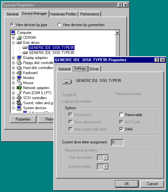 Windows 9x will run very poorly with the default disk drivers. In order to